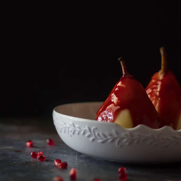 Spiced Tequila Poached Pears with Orange Pomegranate Sauce