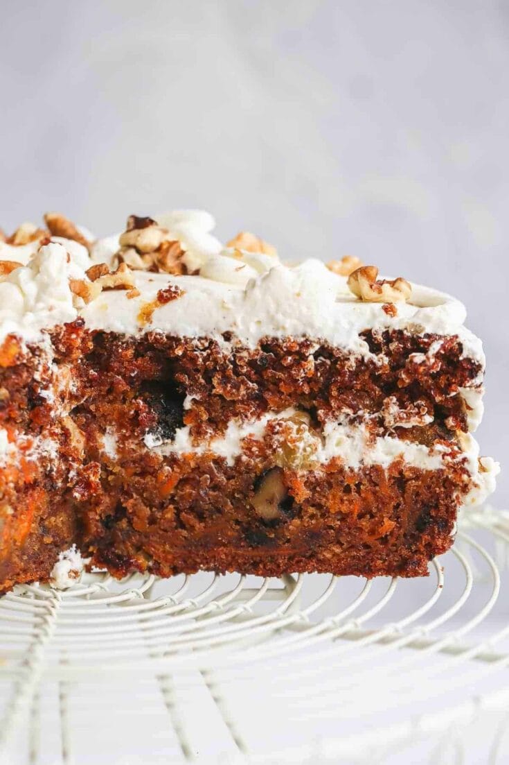 This recipe produces the perfect vegan carrot cake. It’s so simple, moist and flavourful! The batter is prepared in just 15 minutes, then the cake is baked till perfection for an hour.