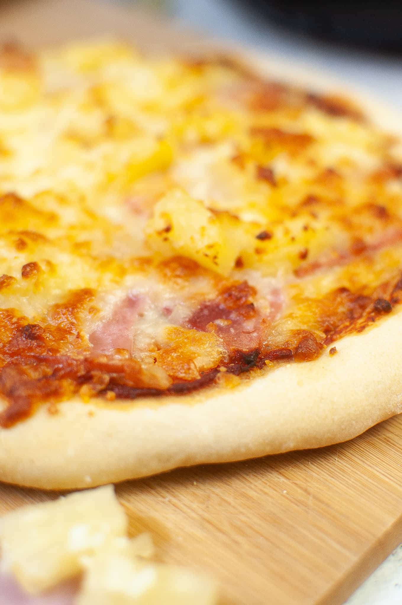 Who doesn't love homemade pizza? If you're a fan of making your own pizza at home, you're going to love this simple air fryer pizza recipe! Featuring Hawaiian pizza toppings, like ham and pineapple, this individual pizza recipe is the perfect family dinner. Prepare the crust from scratch, then add your favorite toppings to create this delicious recipe for dinner tonight.