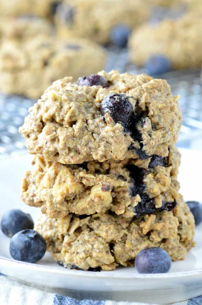 These lemon blueberry breakfast cookies are loaded with healthy ingredients including oats, chia seeds and almond butter which makes it great for breakfast or a snack.