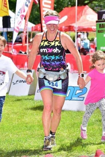 After this, I was bit rattled and just wanted to make it through the rest of the event. I also started to have some serious GI distress as I had taken in a lot of salt water during my swimming struggle. Fortunately, this is where I saw my family! They had boated out to watch the event and it was the boost I needed, as I headed to the beach run and rock scramble.