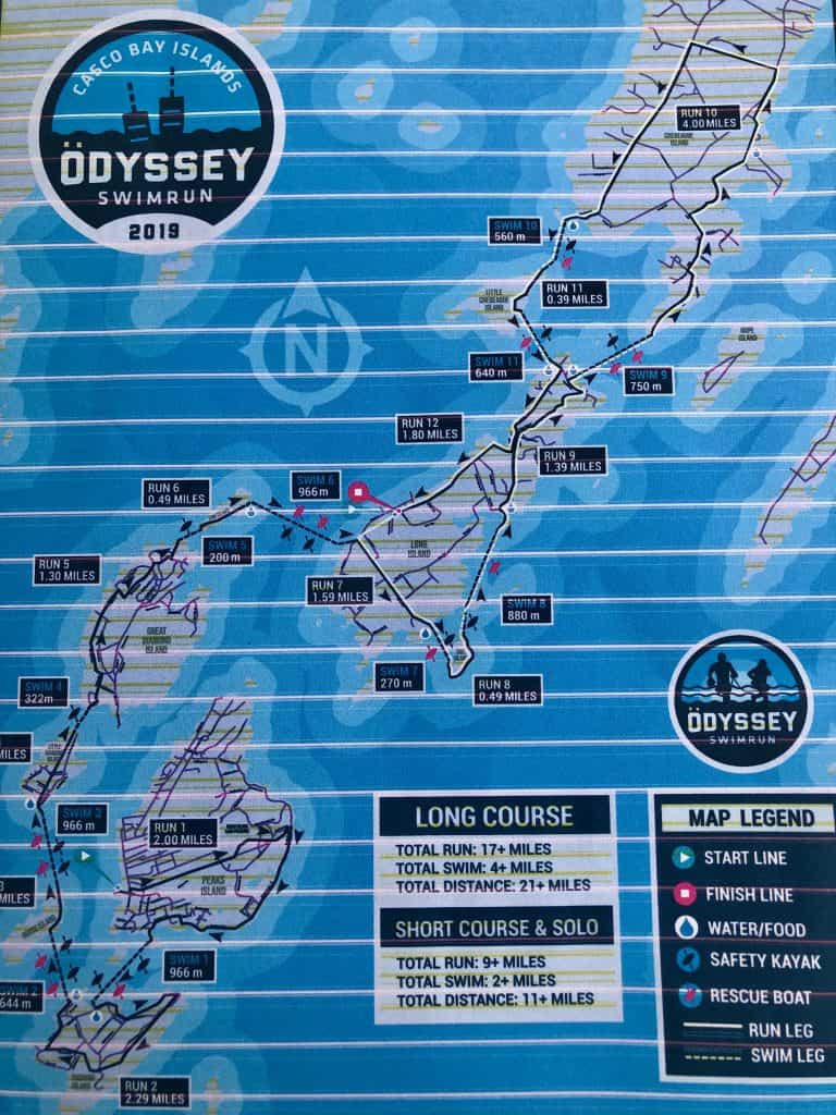 - Long Course Team: The long course included 4+ miles of swimming between 10 islands with 17+ miles of running on the islands.