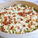 - Remove from the oven, top with crumbled bacon bits, serve warm and enjoy!