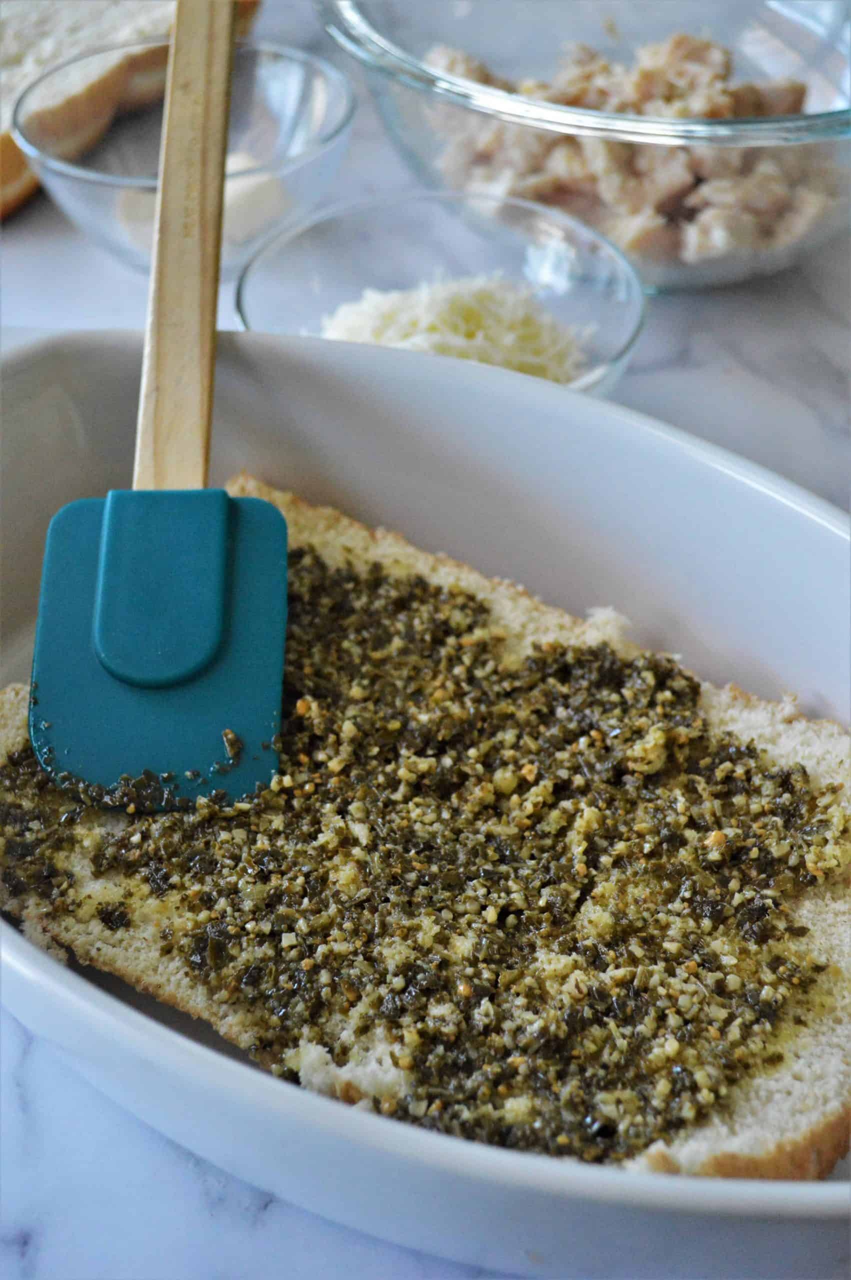 - Spread pesto evenly over the buns.