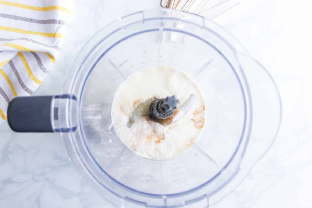 - Add all of the ingredients to a high-quality blender and whip for 2-3 minutes. This will give the ingredients a chance to incorporate and the heavy cream to thicken up. It should be slightly runny and not too thick when you try to pour it.