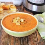 This easy instant pot tomato soup with grilled cheese croutons is the perfect comfort meal for a cold winter's night. Cooking it in the Instant Pot gives it a rich, delicious and creamy flavor that will make everyone think it has been slow cooking all day. Enjoy it as a main course for dinner with the grilled cheese croutons and take the leftovers for lunch the next day!