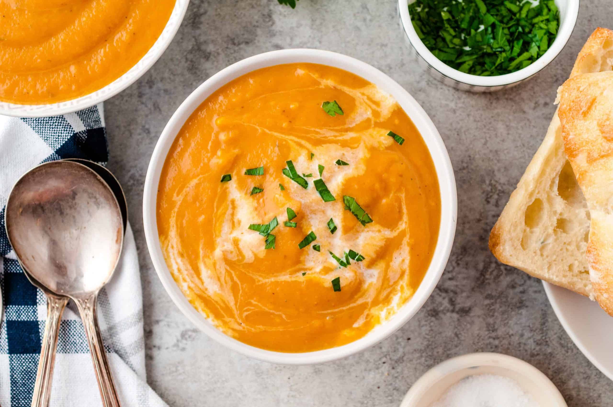 - Apples: Apples are a great compliment to the flavor of this soup. You could dice one up and add it to the pot when cooking or simply add some thinly sliced apples on top as a garnish