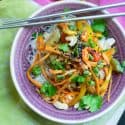 • Divide veggie mixture in 4 portions and serve on top of rice noodles.
