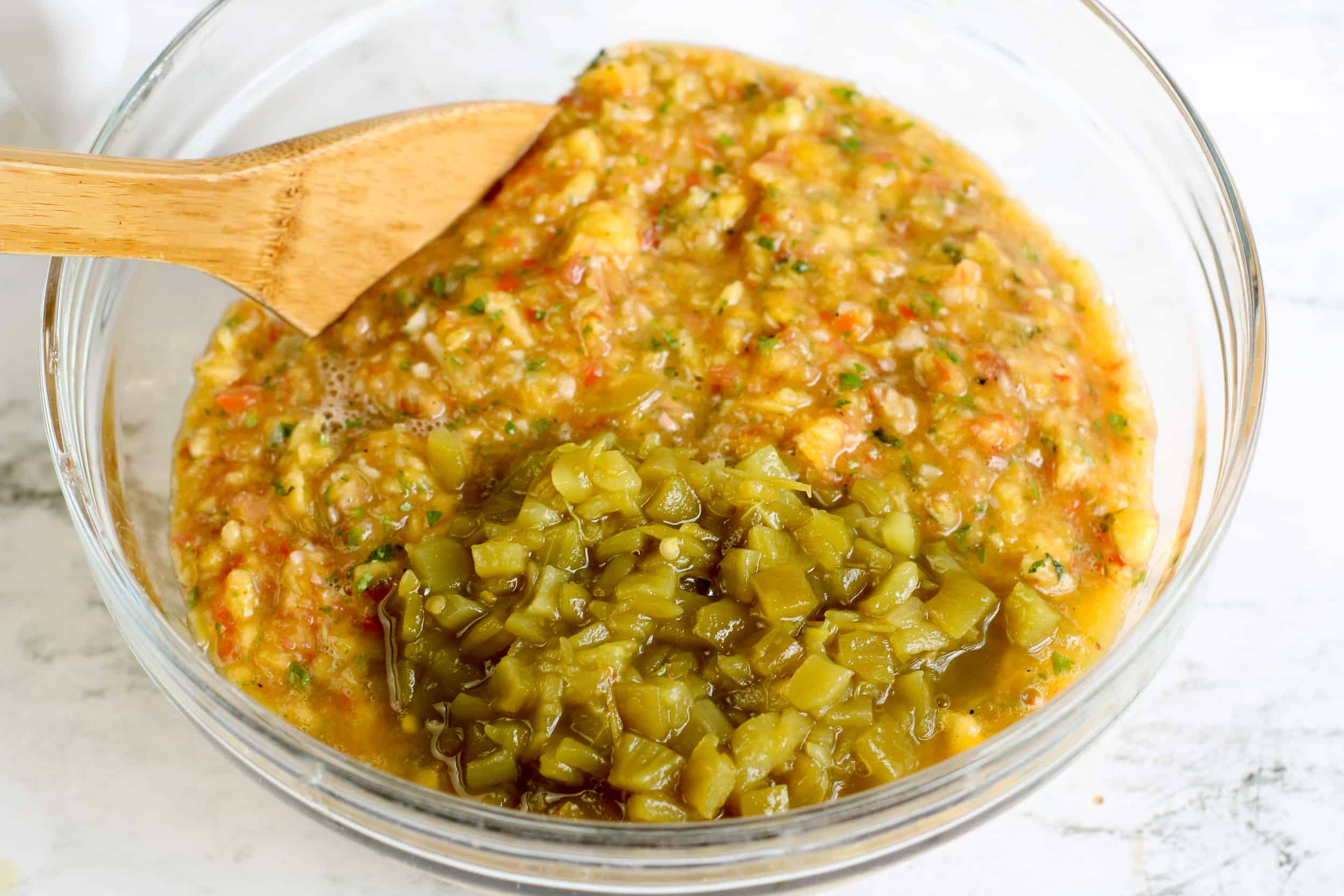 STEP 2: FOLD IN GREEN CHILIES, CHILL, AND SERVE