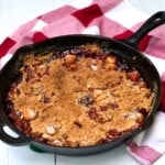 This fresh Rainier Cherry Crumble is so delicious and easy to make! There are just 9 ingredients in this tasty cherry dessert. Start off with plump, ripe Rainier cherries. Then, add on the sweet crumble topping made with brown sugar, butter, flour, cinnamon and almonds. This Rainier cherry recipe is sure to become a family favorite dessert!