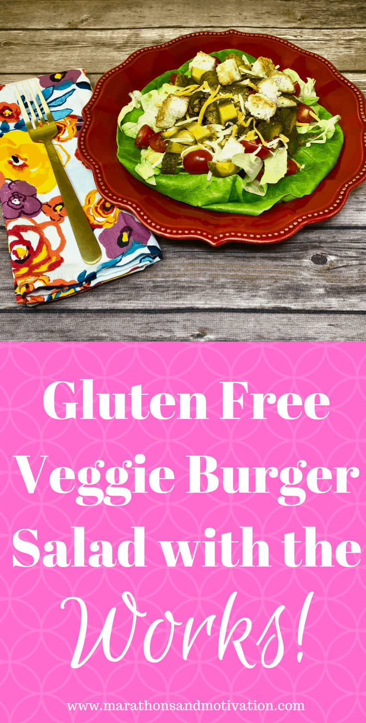 This gluten free veggie burger salad is a great, filling meal. Top it with your favorite burger add-ons and enjoy!
