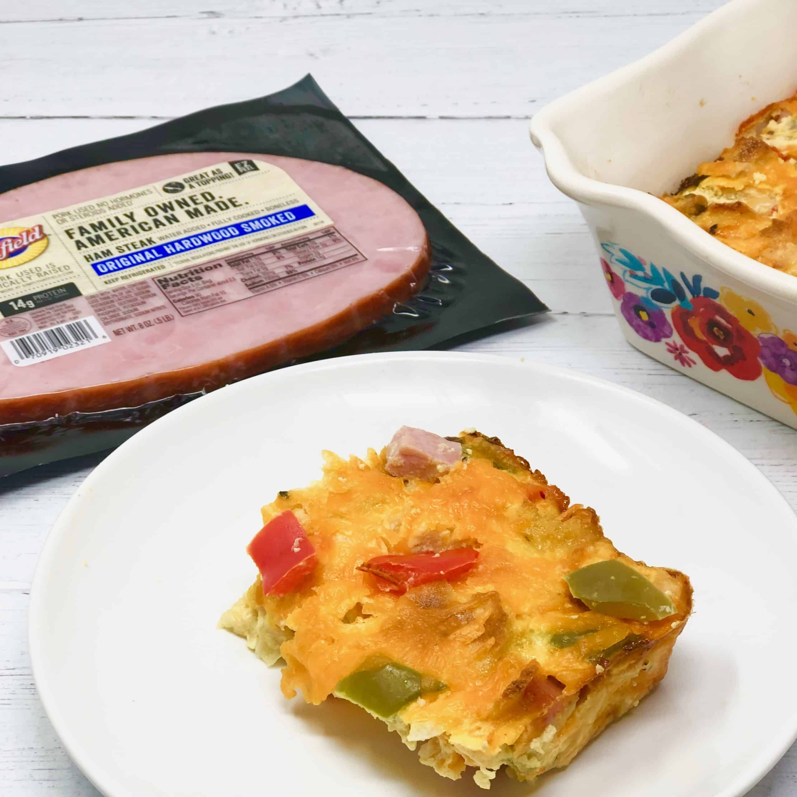 I just love holiday baking and cooking. I have to admit that I went a little overboard for Thanksgiving, so we had plenty of leftovers. However, I have a ton of great recipes that I enjoy making with them. One of my favorites is this Hatfield Ham and Veggie Strata.