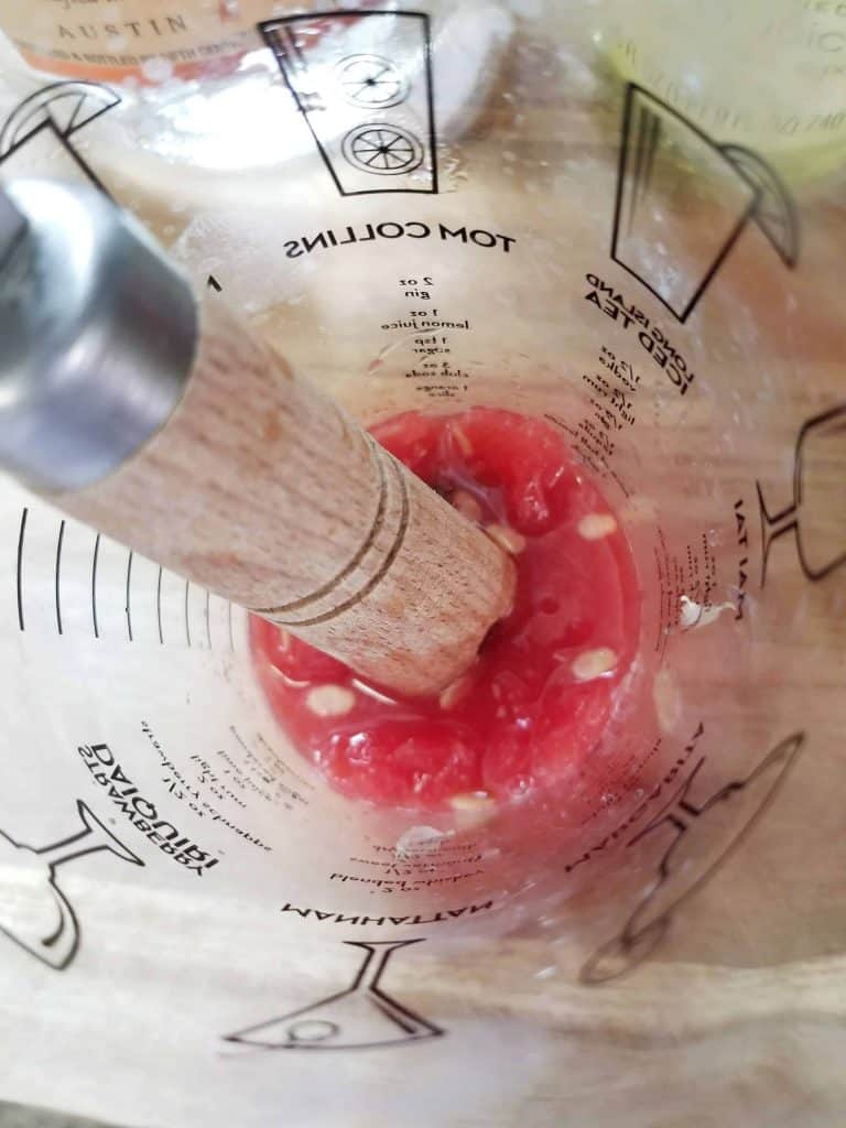 - Muddle until the watermelon has liquified.