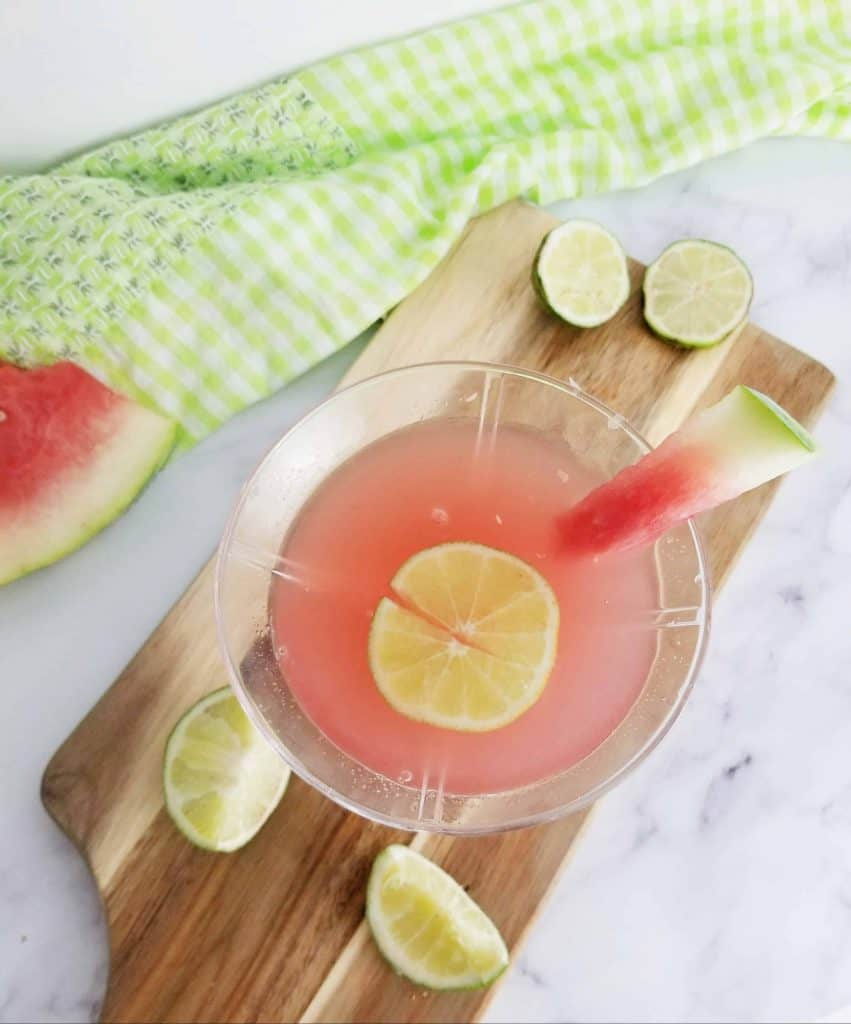 A summer spin on a classic drink. Learn How to Make a Watermelon Martini in just minutes and enjoy this refreshing cocktail all summer long! It is made with fresh watermelon, lime juice, club soda and vodka. Beat the heat this summer with a delicious Watermelon Martini.