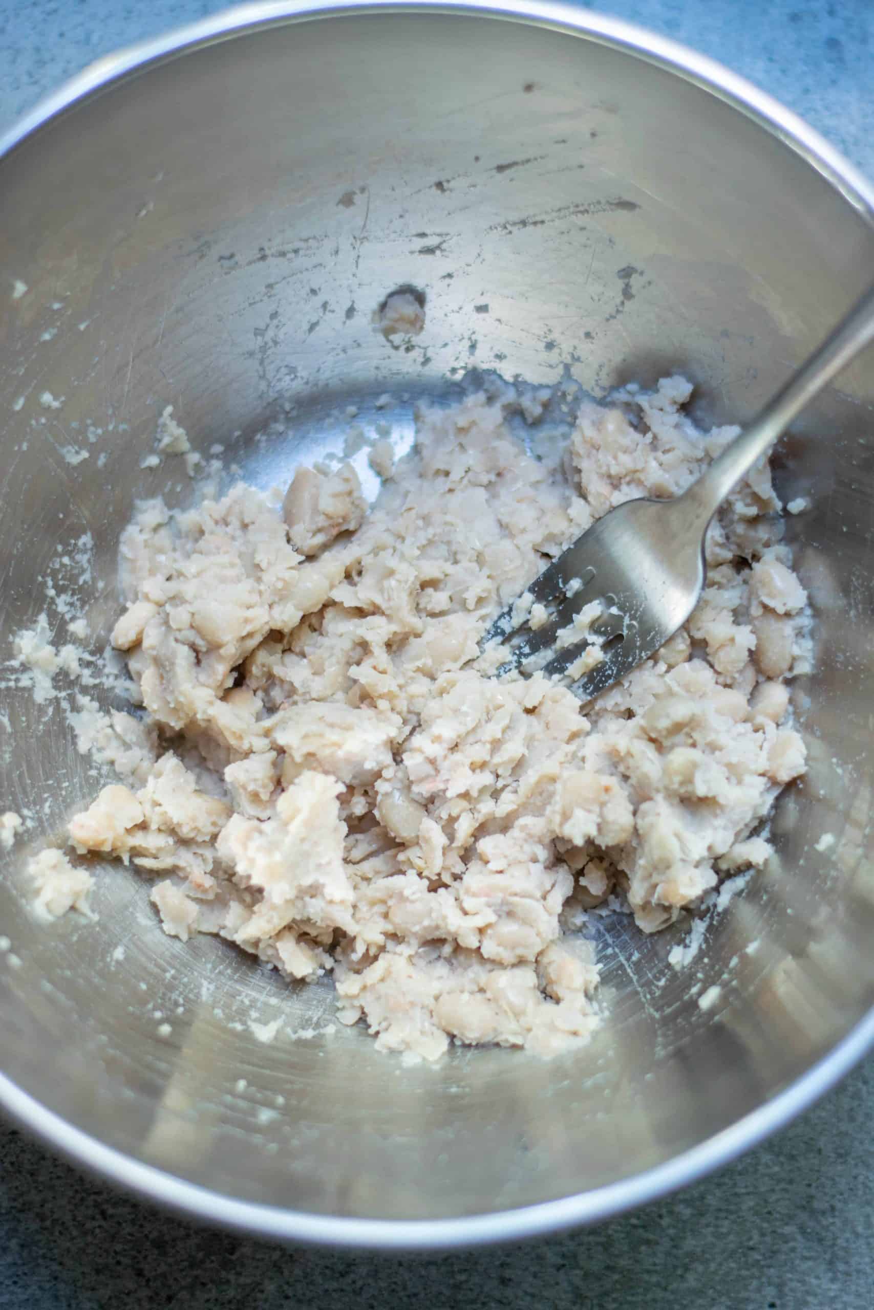 Divide the white bean mixture into 6 balls and press down to form 6 patties.