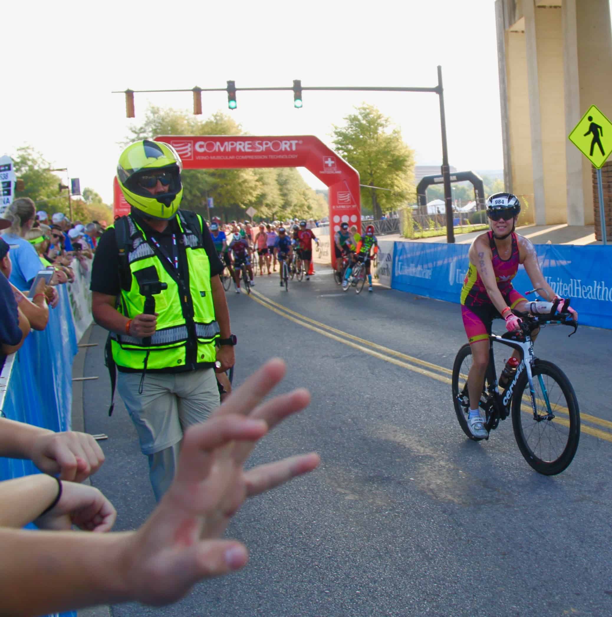 I stopped at the aid station around mile 30 and poured water in the vents of my helmet and all over my body. I saw one of my Smashfest Queen teammates there and it was a real boost! This girl is truly amazing. She had done Ironman Maryland on Saturday and was here the day after doing Ironman Chattanooga! It was so inspiring to see her smiling face as she was doing back to back Ironman races!