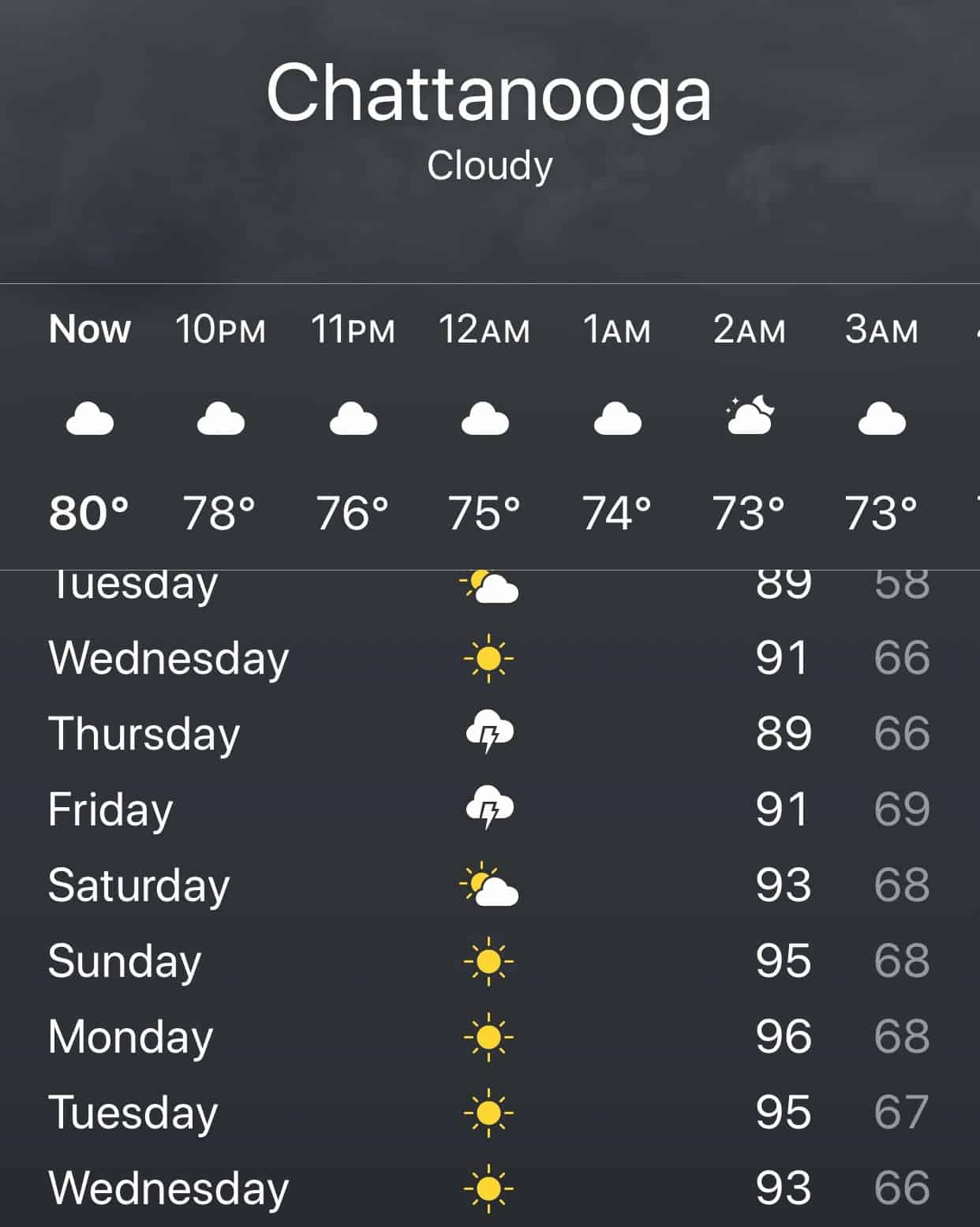 About a week before the race, I took a look at the weather report to see what the day would be like. When I saw the forecast would be in the high 90's every day while I was there, I checked my weather app again to make sure I had plugged in the right city. As dumb as this may sound, I had no idea that it would be that hot in Tennessee at the end of September. It was in the 90's when I did the half there the previous May, but I did not anticipate that the Fall would also be the same. Yes, this was not smart planning on my part and one of 100 lessons learned over the past week.