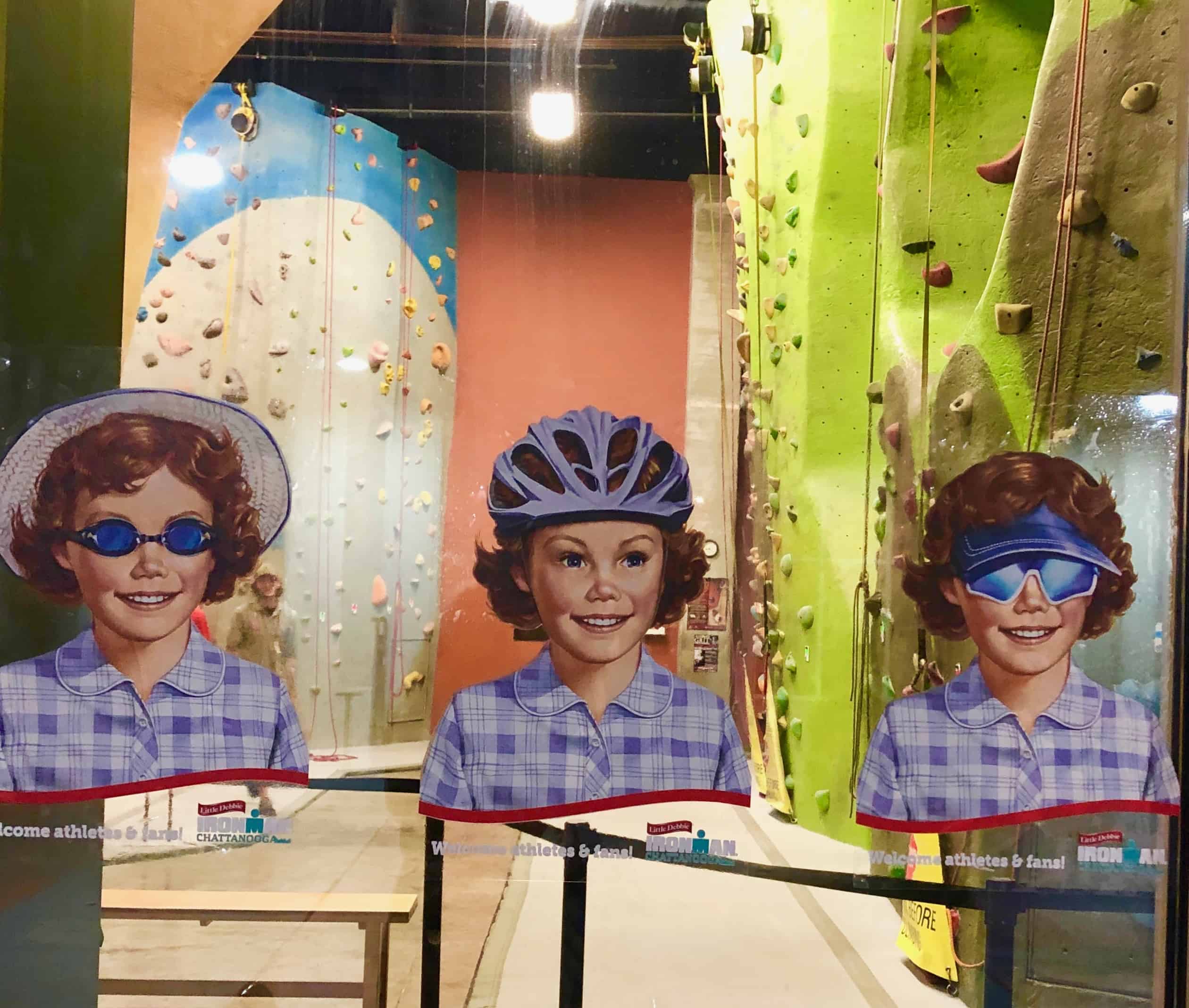 It was so nice to get to Chattanooga on Thursday and spend time enjoying the city with my family. It is a small city and easy to walk around. There are several good restaurants, a wonderful Aquarium and a great children's museum. The town also rolls out the red carpet for athletes and there are signs about the race everywhere! Little Debbie sponsors it and the kids and I really got a kick out of the display below!