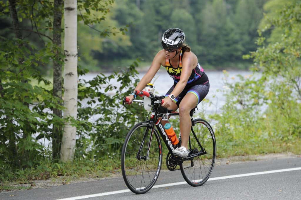 I grabbed my bike, headed out and walked way past the mount line to stay clear of other people when I got on it. There were people everywhere cheering and shouting encouragement in French! It was so thrilling. The first part of the bike course is up a big hill as I headed out of town. In fact, the entire section was pretty hilly, but nothing unmanageable. Once I got out to the highway, the course was a bit easier. The road was closed to traffic, which was wonderful, but there were a lot of cyclists all around me. Some guy passed me on the right as I was climbing up a slow incline, which totally annoyed me as that is how accidents can happen! I said "Hey, pass on the left!" He turned around and acknowledged what he had done was wrong.