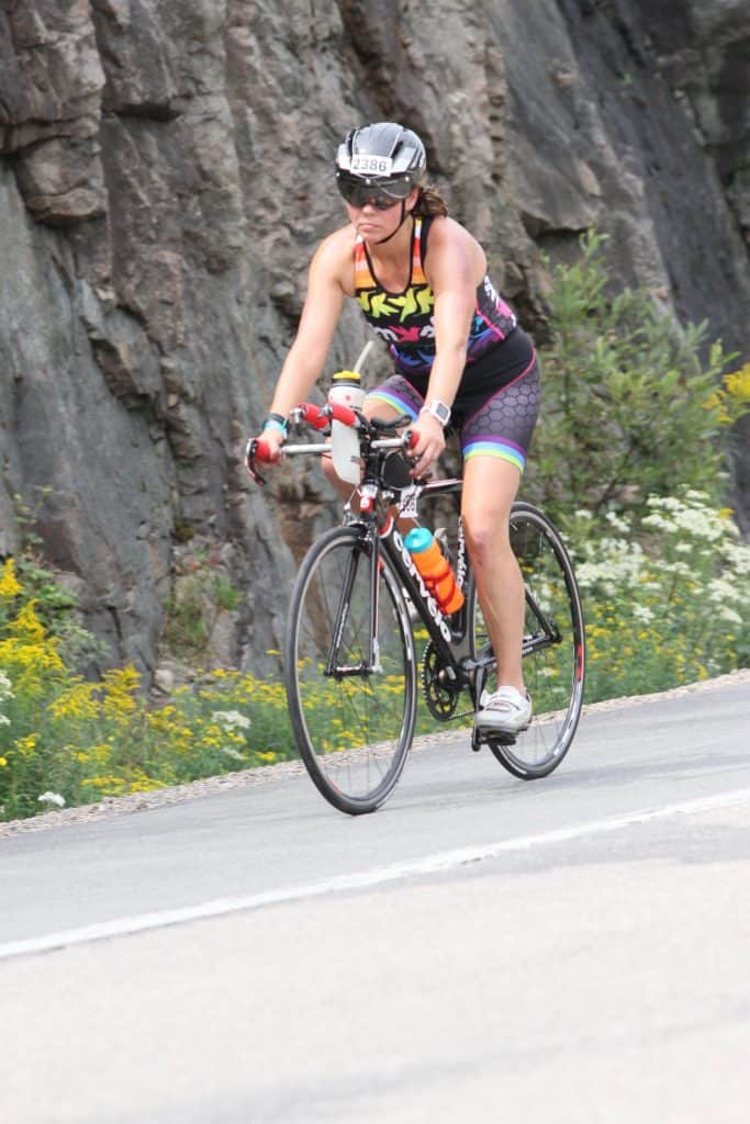 I was enjoying myself and seeing all of the other athletes and their different bikes. A few people chatted with me at different sections. It was also very cool to watch the Pro Triatletes as they were heading back on the highway into town.