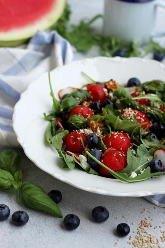 Watermelon Feta Salad with Blueberries from Happy Kitchen