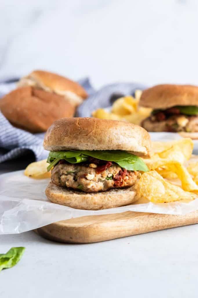 Sun-Dried Tomato, Spinach, and Feta Turkey Burgers from Lemons + Zest