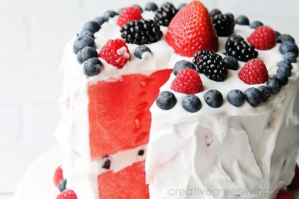 Layered Watermelon Cake with Coconut Cream Frosting by Creative Green Living