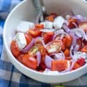 Using fresh garden tomatoes is the key to making the salad taste it's absolute best. Whenever possible, using tomatoes that you have grown in your garden or something you picked up at a farmer's market gives you the best flavors. Don't worry, it's still a fantastic salad when tomatoes aren't in season too. If you love tomatoes as much as I do, be sure to try out my Bruschetta with Feta and Tomato, Stuffed Tomatoes with Cashew Cream Sauce, and my Easy Instant Pot Tomato Soup with Grilled Cheese Croutons.