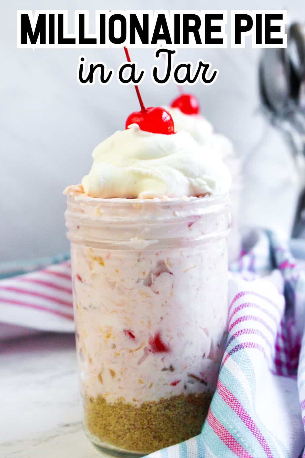This pie in a jar recipe is made with whipped cream, which means it's essential that you keep the jars chilled when you're not eating them. Keep the jars covered and in the refrigerator until you're ready to serve them. The millionaire pie will stay good for up to four days in the fridge.