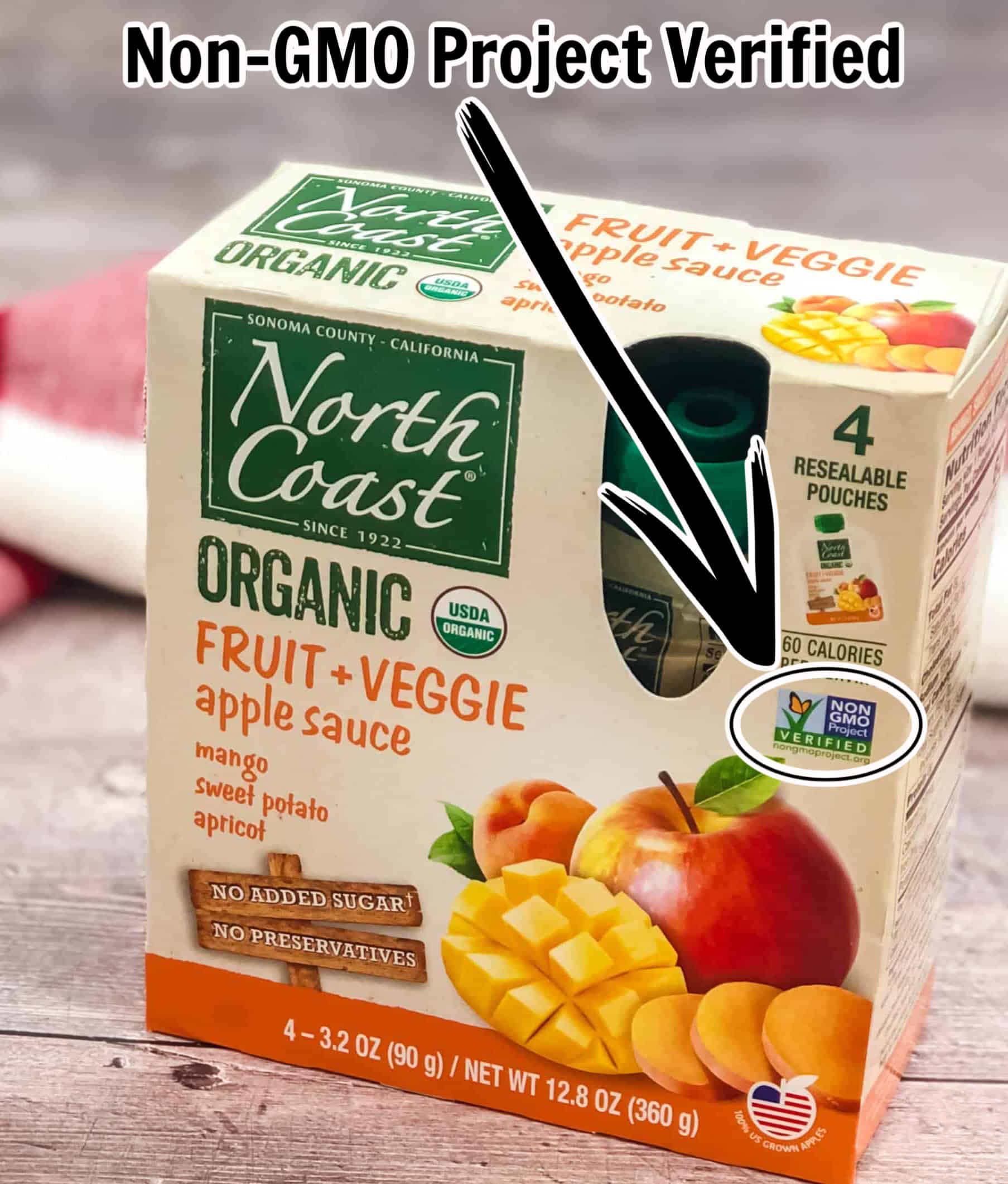 Genetically modified food is derived from plants or animals whose DNA has been altered in a laboratory by genetic engineering. Buying organic is one way to make sure your food is not genetically modified. You can also look for the Non-GMO Project Verified label on foods like North Coast Organic Fruit + Veggie Apple Sauce.