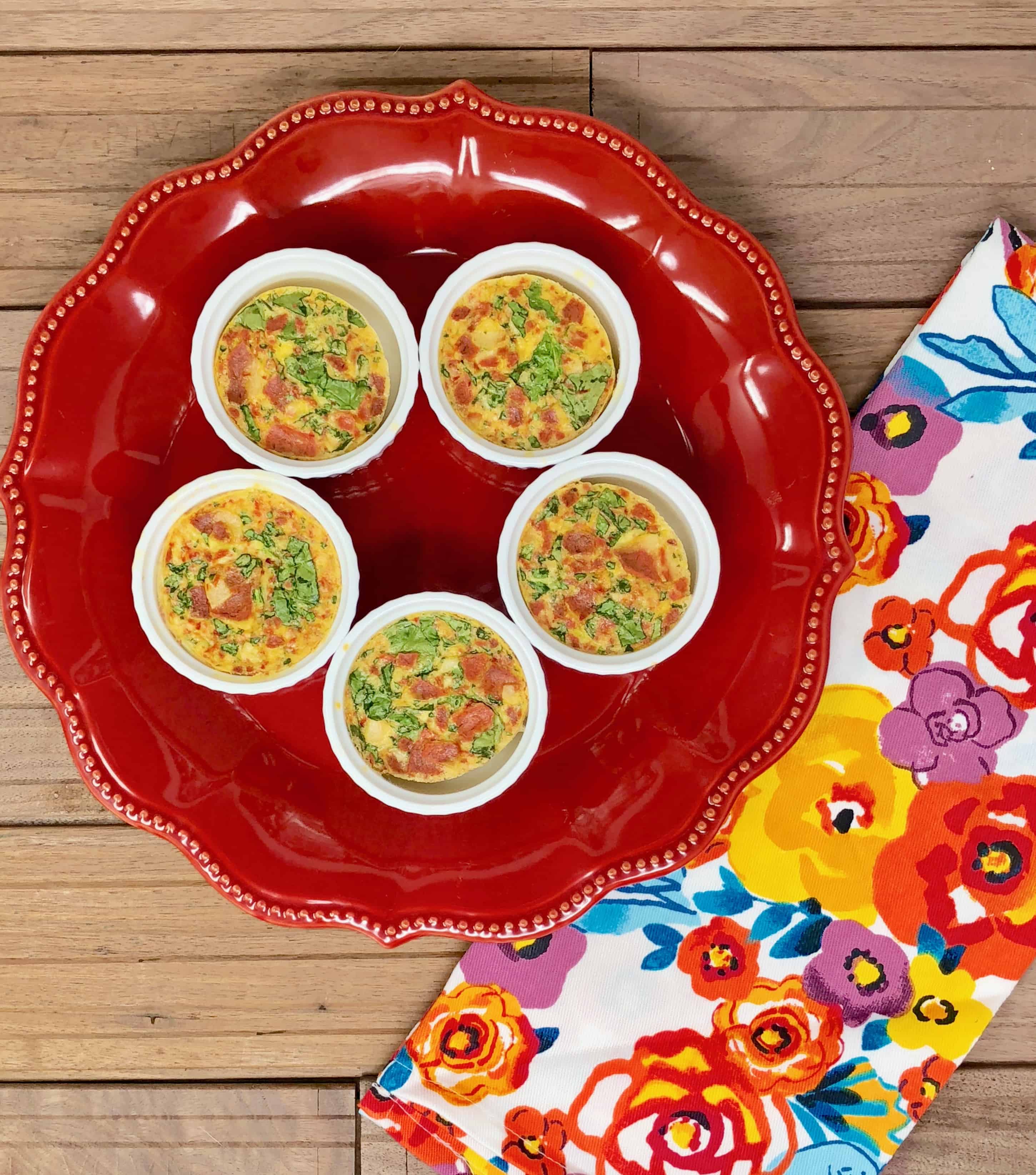Roasted Red Pepper, Spinach and Vegetarian Bacon Egg Bites