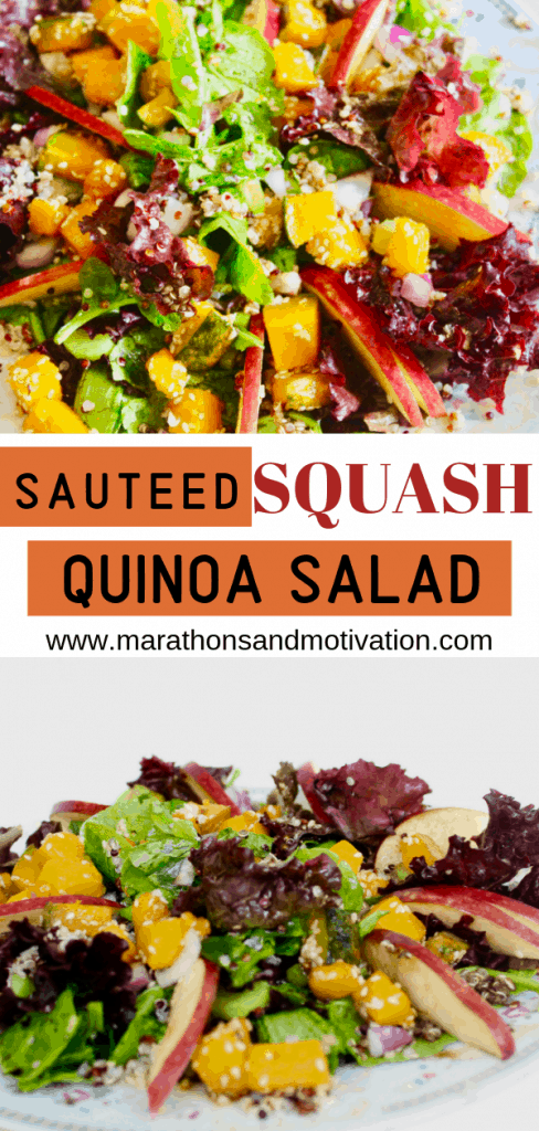 The days are getting shorter and the temperature outside is getting cooler. Fall is on it's way! This is one of my favorite times of year for a number of reasons. I love seeing the leaves change color. It is also my favorite time of year for running. Another thing I really enjoy about this season are all of the flavors of Fall. Yesterday I made this delicious Sautéed Squash Quinoa Salad which was filled with fresh seasonal produce.