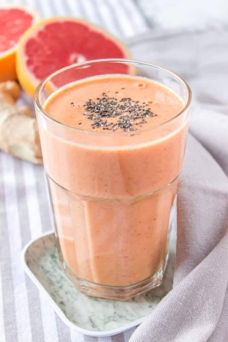 This immune-boosting Grapefruit Ginger Smoothie is perfect for waking up your body and energizing. It’s creamy and packed with beautiful citrus flavor, added sugar-free and great for fighting cold and flu.
