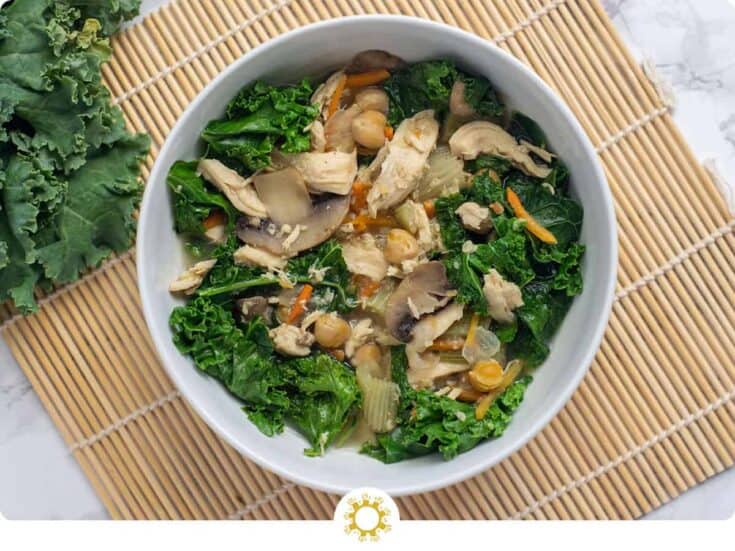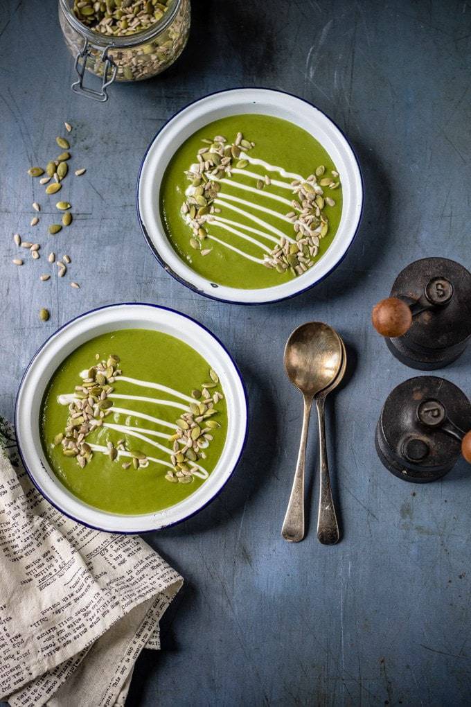 This kale soup recipe is quick and easy. You only need 6 ingredients and 20 minutes! It’s vegetarian and gluten-free and easily vegan. This bright green soup is full of nourishing ingredients and tastes delicious.
