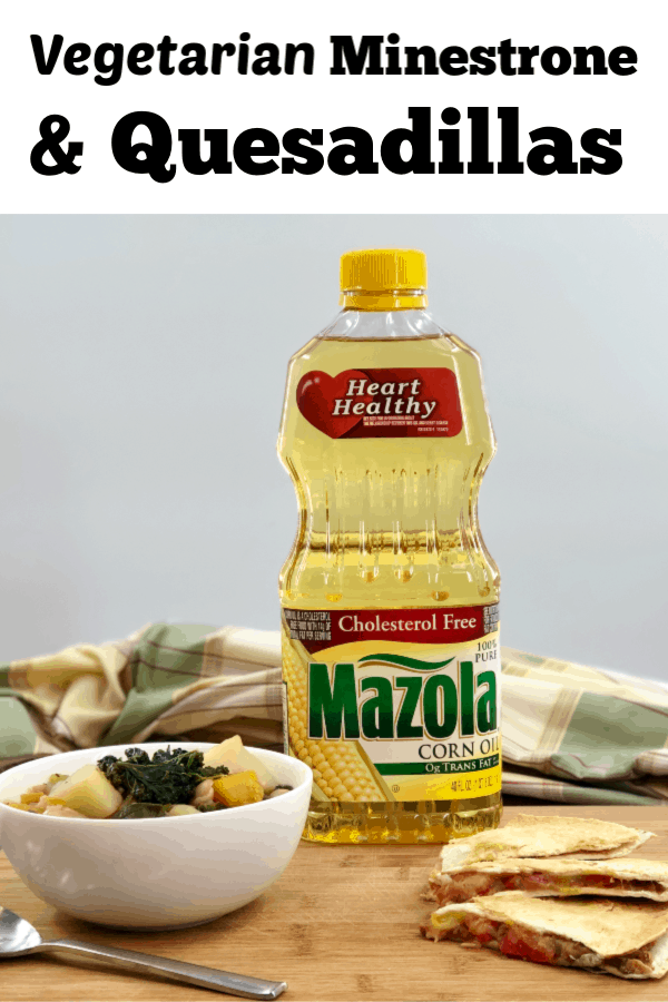 This shop has been compensated by Collective Bias, Inc. and its advertiser. All opinions are mine alone. #MazolaHeartHealth #CollectiveBias Give this quick and easy Vegetarian Minestrone and Quesadillas Recipe a try! It is a delicious, hearty meal loaded with fresh vegetables and perfect for Heart Health Month in February! I love using Mazola® Corn Oil in this family favorite dish because "A clinical study showed Mazola Corn Oil reduces cholesterol 2x more than extra virgin olive oil. To learn more about this claim, visit Mazola.com."