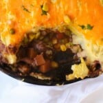 You will also need a large pot to cook the potatoes and a cast iron skillet to prepare the pie and bake it. If you do not have a cast iron skillet, the vegetables can all be placed in a glass baking dish and topped with potatoes before baking it.