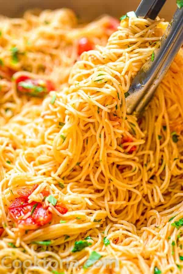 This Angel Hair Pasta is made with cherry tomatoes, garlic, and olive oil. You won't believe how simple and TASTY this recipe is!