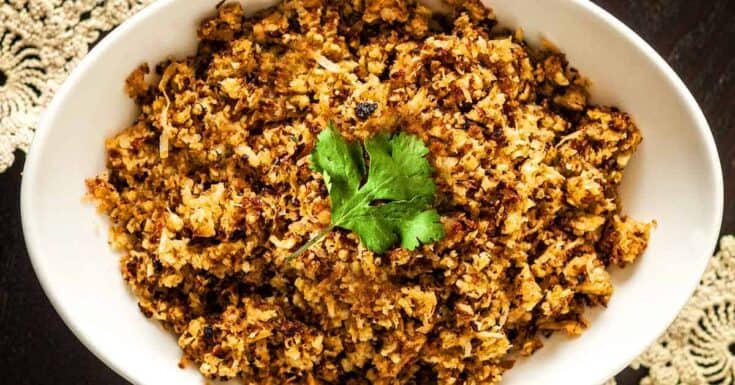 This crispy coconut cauliflower rice is such a delightful, low-carb side dish! A perfect rice substitute that’s so much more nutritious and absolutely delicious. With just 6 ingredients, this healthy recipe will make clean-eating extra easy.