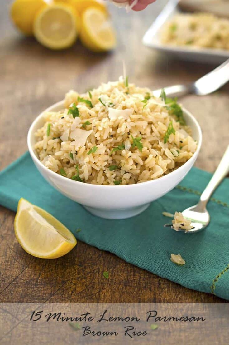 tsaLemon Parmesan Brown Rice is ready in just 15 minutes! It's a perfect side dish to pair with Sea Scallops, and is made with fresh squeezed lemon juice, Parmesan cheese and fresh parsley.p