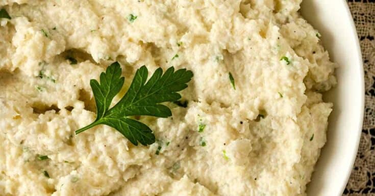 This creamy mashed cauliflower recipe is slightly textured, rustic, requires just 7 main ingredients and takes only 20 minutes to make! It’s keto, cheesy, and easily made vegan! A healthy side dish for a simple family meal or fancy dinner party!