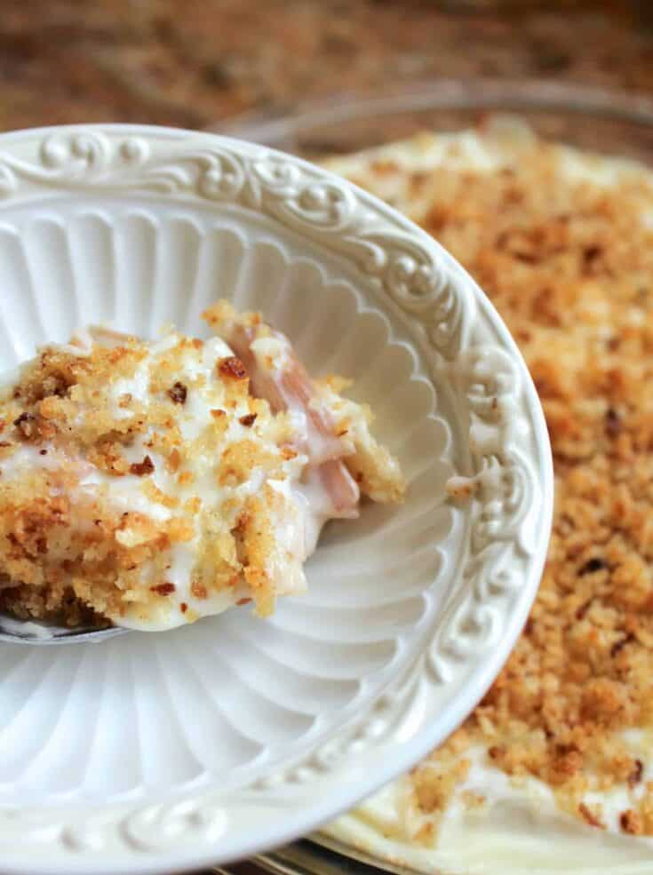 Swiss Chard Stems with Provolone White Sauce and a Crunchy Breadcrumb Topping
