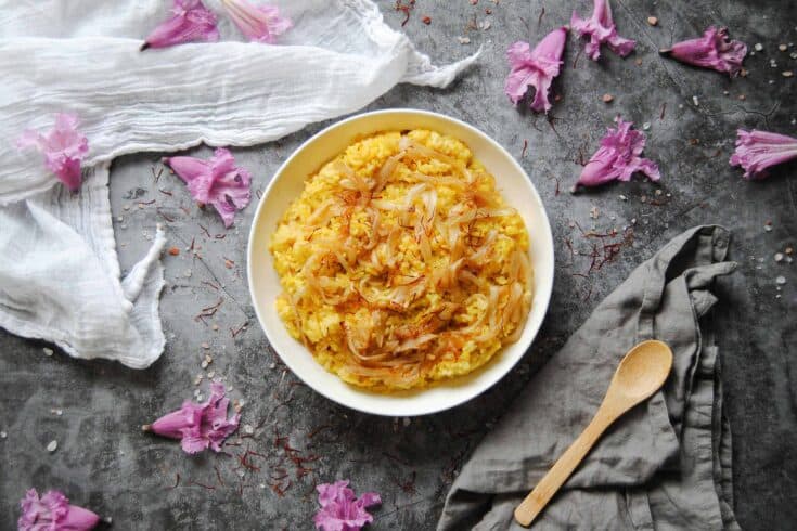 This Yellow Saffron Rice uses vegetable broth and onions to compliment the floral, aromatic saffron for a delicious and versatile side dish.